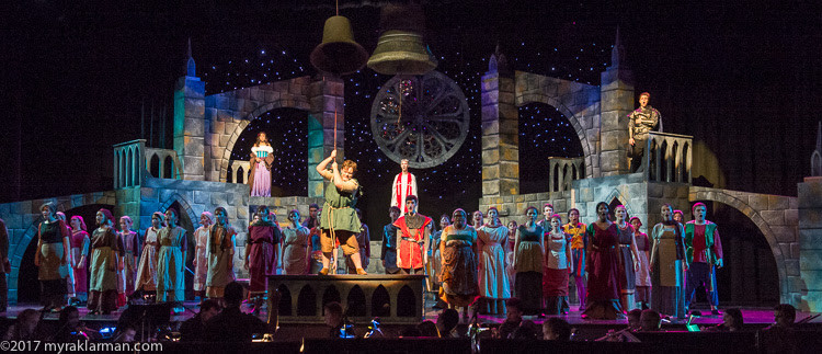 The Hunchback of Notre Dame This production was scenic designed by the PTG technical director, Mysti Plummer, and I was thankful to be the Sets Crew Crewhead for this show. I think it was absolutely gorgeous and I had incredible fun creating giant bells out of hula hoops and a stained glass window out of lighting gels. | |