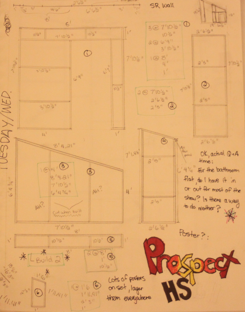 Prospect High: Brooklyn Technical Drawings While we ended up using stock flats for most of the Prospect set, my technical director had me create technical drawings for flats to build as a part of the individualized class I was taking with her at the time. | |