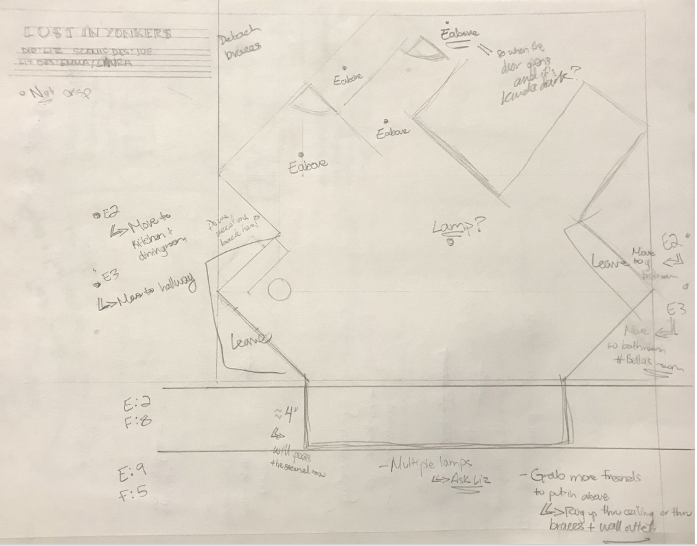 Lost in Yonkers Lighting Design After working several shows as a lighting technician, I was invited to design lighting for "Lost in Yonkers" for PTD Productions. This show involved many practicals, and I was able to work with the scenic designer to have light filtering through a window to create moonlight during night scenes. | |